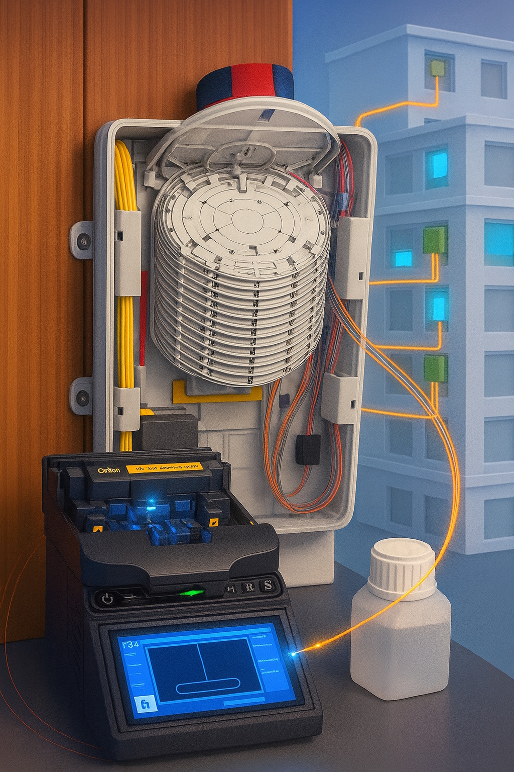 Nel corso dell’intervento abbiamo provveduto ad abbinare correttamente tutte le fibre provenienti dall’OTO al disco del BEP, effettuando le relative saldature. Al termine, sono state eseguite e verificate tutte le misure per garantire la piena conformità dell’impianto.