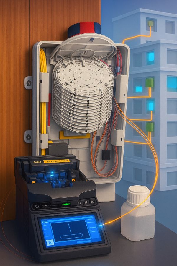 Il progetto ha previsto l’installazione di un nuovo rack e la realizzazione della rete interna in fibra ottica per garantire prestazioni elevate e una connettività stabile. Sono stati posati collegamenti in fibra monomodale con terminazioni certificate, organizzati in modo ordinato e facilmente manutenibile. La struttura è stata progettata per supportare velocità elevate, ridurre le latenze e assicurare un’infrastruttura moderna e pronta per future espansioni tecnologiche.