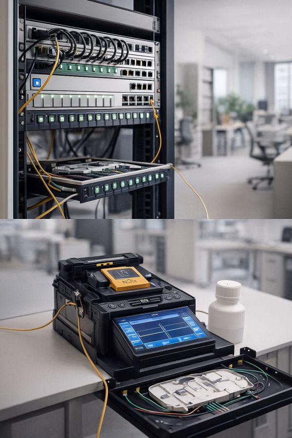 Il progetto ha previsto l’installazione di un nuovo rack e la realizzazione della rete interna in fibra ottica per garantire prestazioni elevate e una connettività stabile. Sono stati posati collegamenti in fibra monomodale con terminazioni certificate, organizzati in modo ordinato e facilmente manutenibile. La struttura è stata progettata per supportare velocità elevate, ridurre le latenze e assicurare un’infrastruttura moderna e pronta per future espansioni tecnologiche.